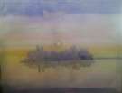 Original Denver City Skyline In Autumn Sunset GG – 16″ x 20″ Canvas Colored Pencil